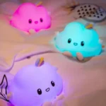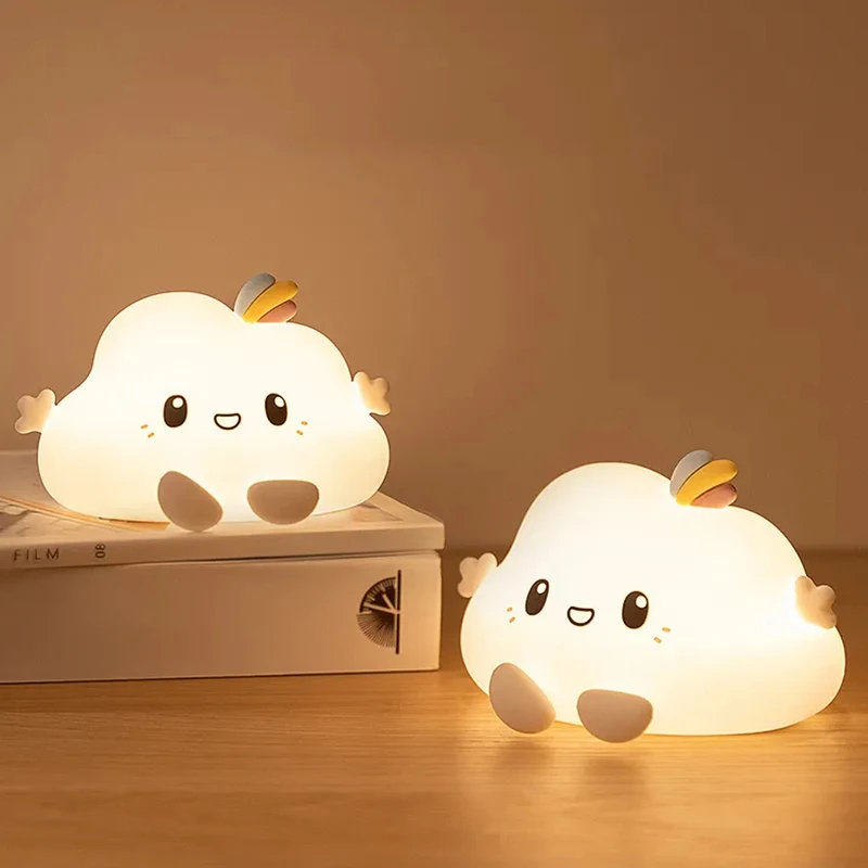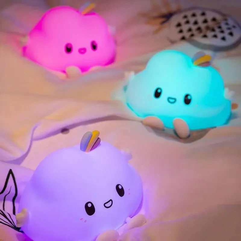 چراغ خواب کودک مدل ابر وسیله ای زیبا و کاربردی و البته ضروری برای اتاق خواب کودک شماست. جنس این چراغ خواب سیلیکونی بوده و از هرگونه آسیب رسانی به کودک شما جلوگیری می کند. این چراغ خواب با طراحی جذابی به شکل ابر دارای دو حالت نوری شب خواب و RGB است که با تغییر و انتخاب هریک از مود های این چراغ می توانید از نورهای جذاب آن لذت ببرید. حالت RGB این چراغ خواب کودک یک ویژگی جذاب دارد که می توانید با ضربه زدن به سطح سیلیکونی چراغ خواب رنگ آن را تغییر دهید. این چراغ خواب کودک قابلیت شارژ مجدد را داراست و از طریق کابل Type-C (تایپ سی) موجود در جعبه می توانید آن را شارژ نمایید.